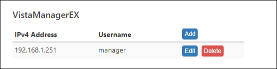 Add Open the Edit VistaManagerEX dialog and register a new AT-Vista Manager EX.