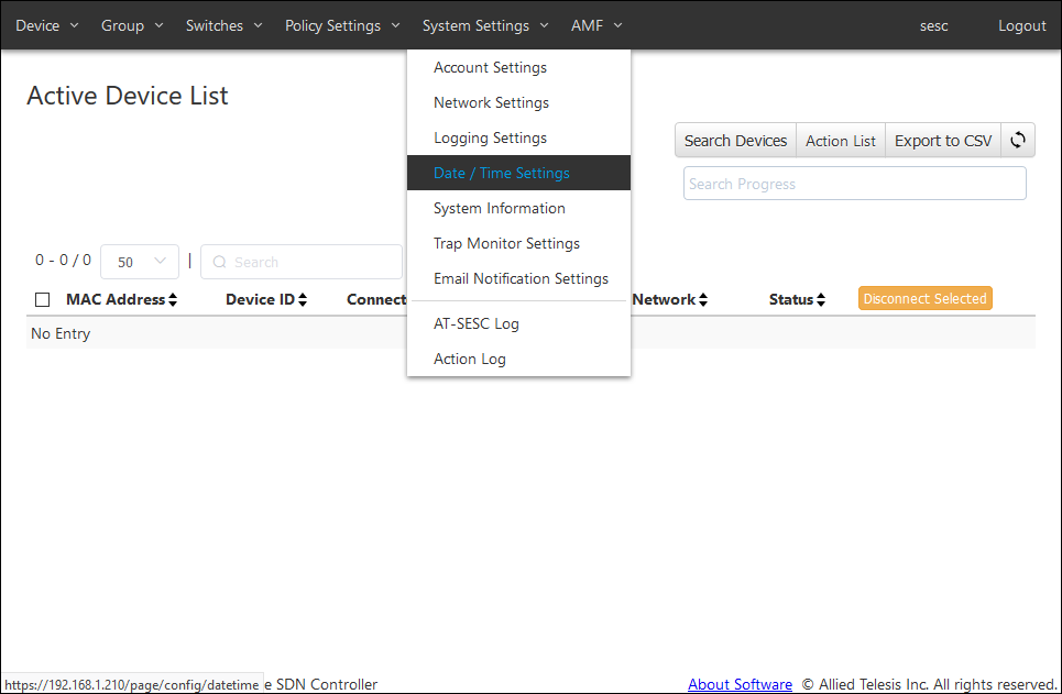 - Click the "System Settings" menu, then click the "Date / Time Settings" sub-menu.