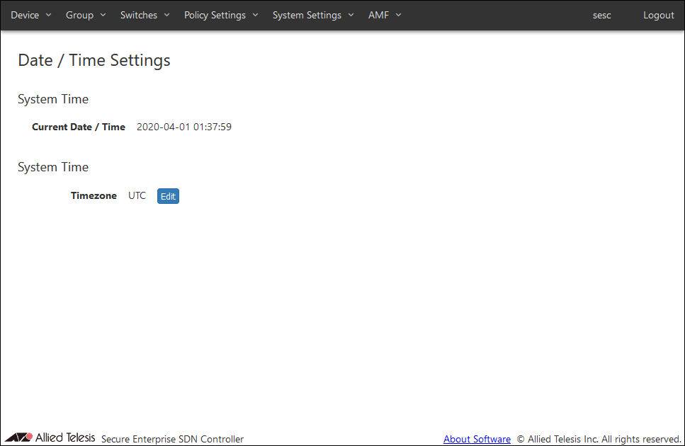 - The System Settings > Date / Time Settings page is displayed. Click the "Edit" button in the Timezone item.