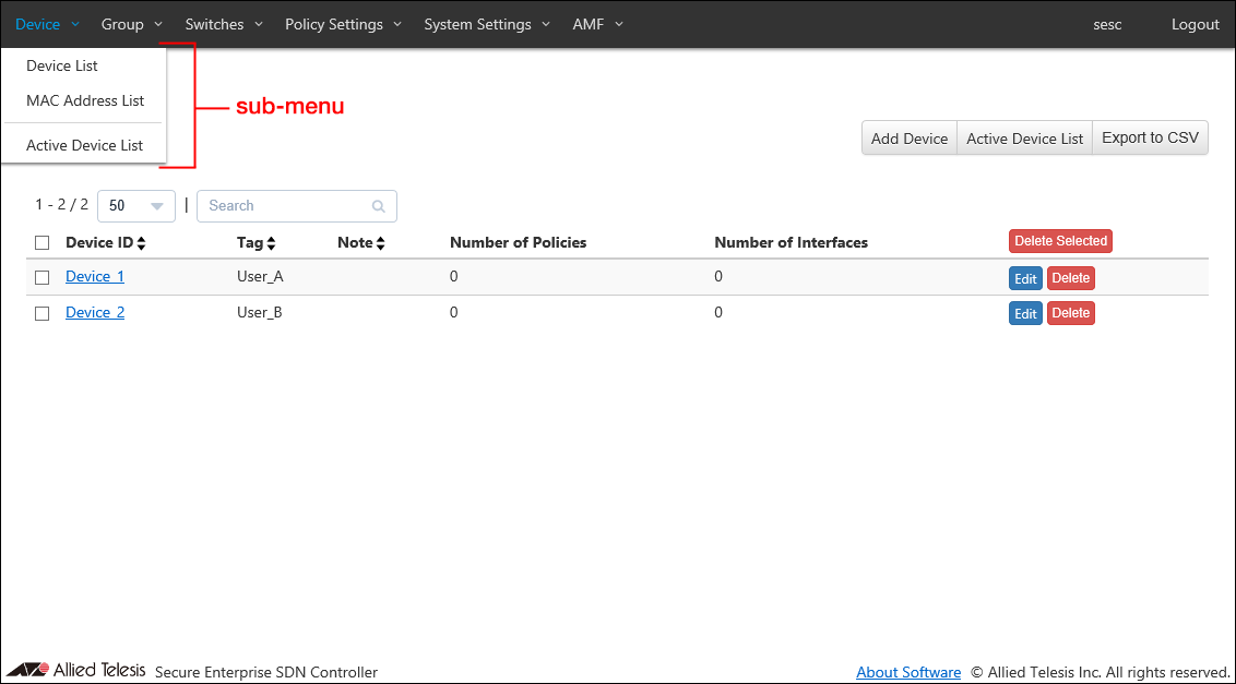 - Device > MAC Address List