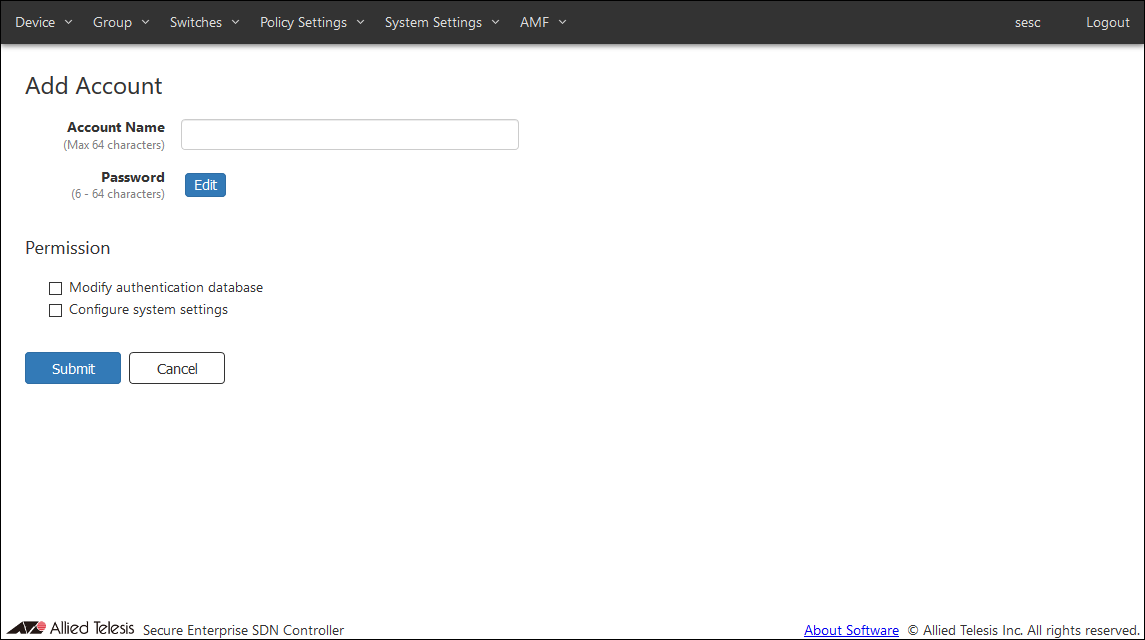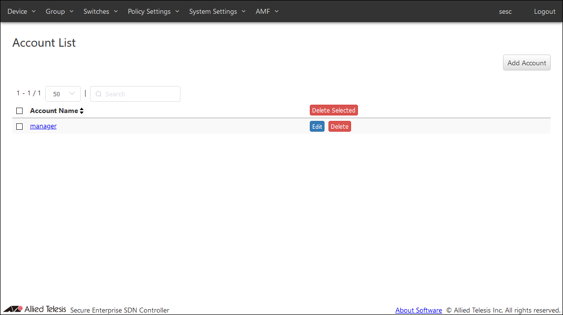 NoteAccount name and permissions of the default account "manager" cannot be changed.