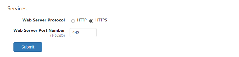 | Web Server Protocol | Protocol (HTTP or HTTPS) to use for the web interface. Default is HTTPS. |