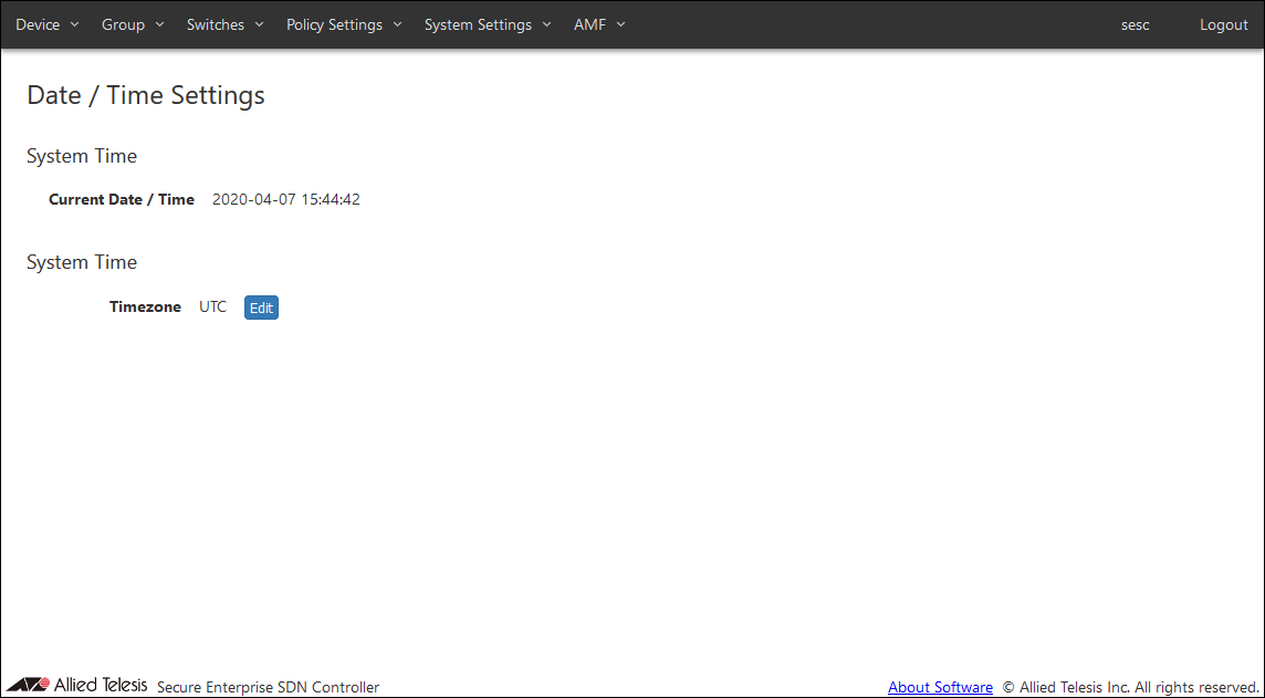 | Timezone | Display the system timezone Default is UTC. Click the "Edit" button to set the timezone. |