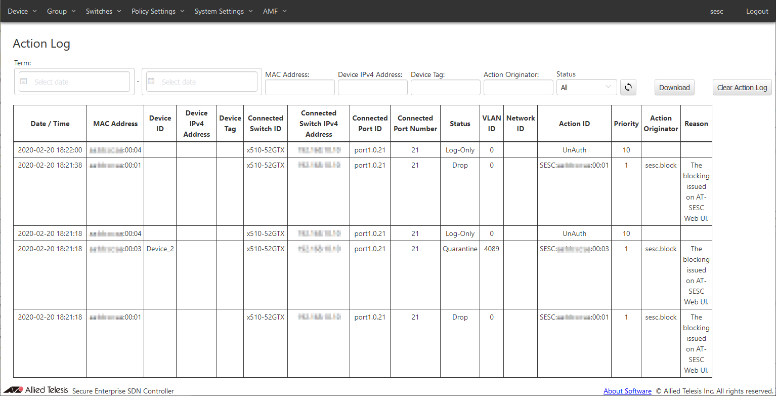 - Log-Only: AMF Security mini does not specify an action and records the device information.