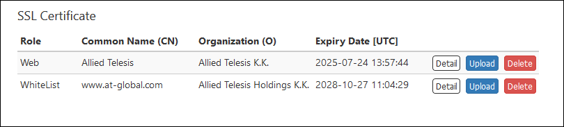 | Detail | The detailed information of the registered SSL server certificate is displayed. |