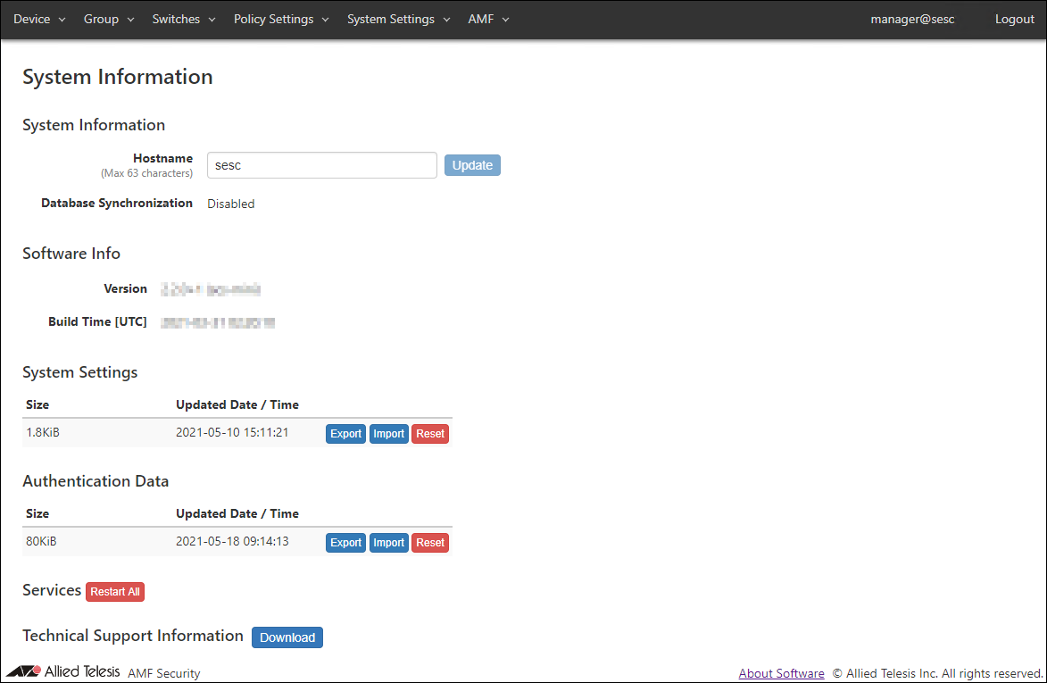 NoteAfter setting the AMF Master, AMF Security mini accepts both unencrypted and encrypted sessions. You cannot disable one of them.