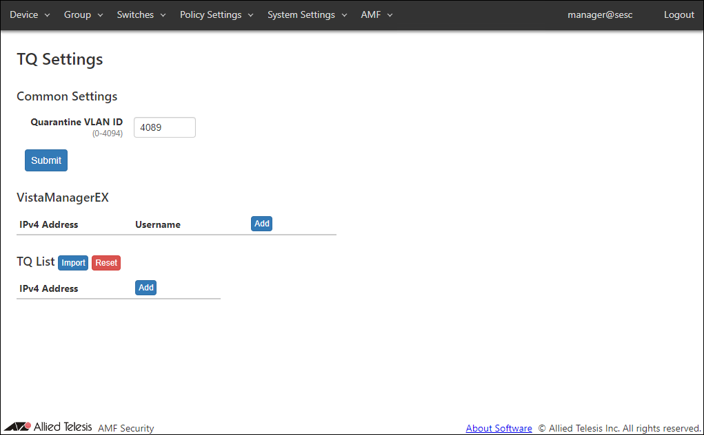 | IPv4 Address | Enter the IP Address of the AT-Vista Manager EX server. |
