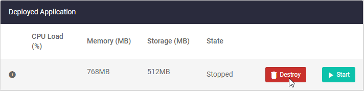 Hover over the (i) icon on the left side of the Deployed Applications List. In the pop-up window, click on the Upgrade button.