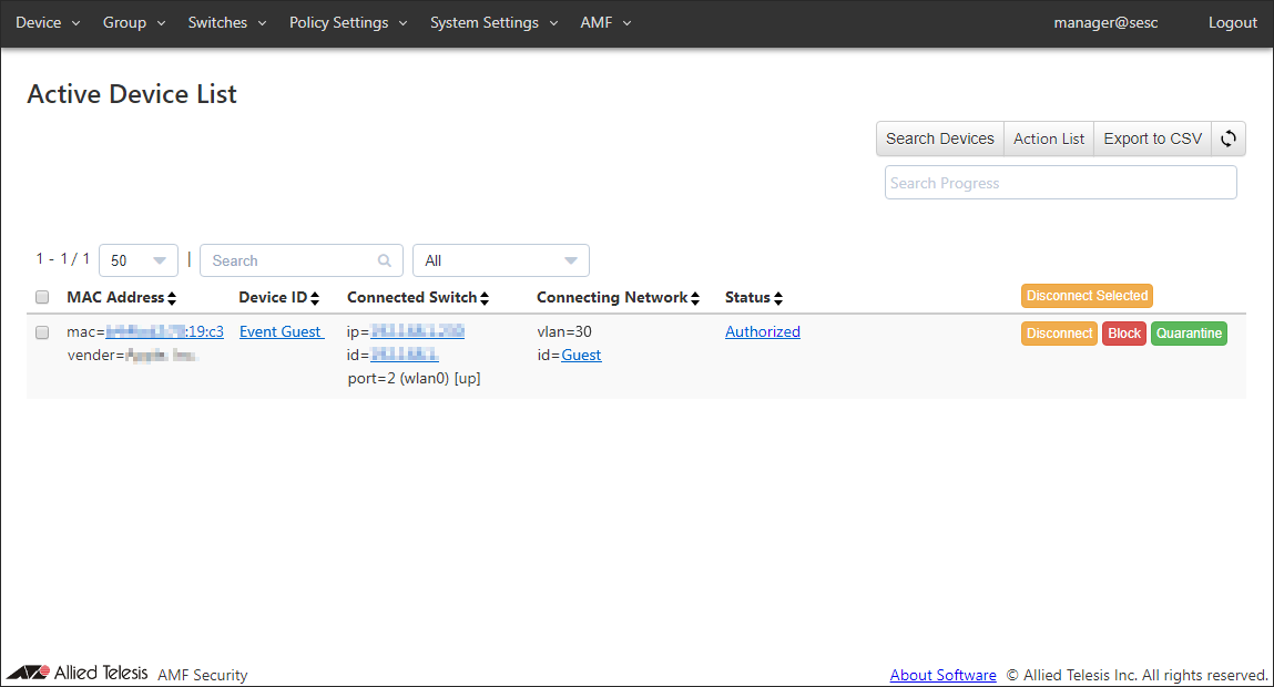 Later you can use the network to specify which VLAN a device can belong to. AMF Security mini achieves this by telling switches to add appropriate VLAN tags to the packet originating from the allowed devices.