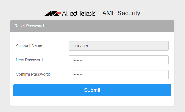 You can access AMF Security Password Reset page from the following link. Please reset your password on this page. https://(AMF Security mini's IP Address)/page/system/password_reset/xxxxxxxxxxxxxxxxxxx This page is valid for 10 minutes. Please change your password in 10 minutes. If you don't remember this mail, please ignore this email and your password will remain unchanged.