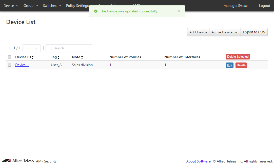 AMF Security mini can control access to the network by registered devices.Devices can be added on the Device > Add Device page.