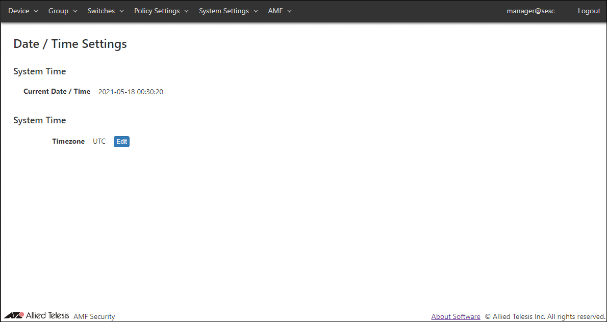 NoteAfter setting the AMF master, AMF Security mini accepts both unencrypted and encrypted sessions. You cannot disable one of them.
