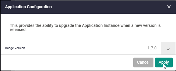 In the Application Configuration dialog, select the updated version from the Image Version drop-down list, and then click the Apply button.