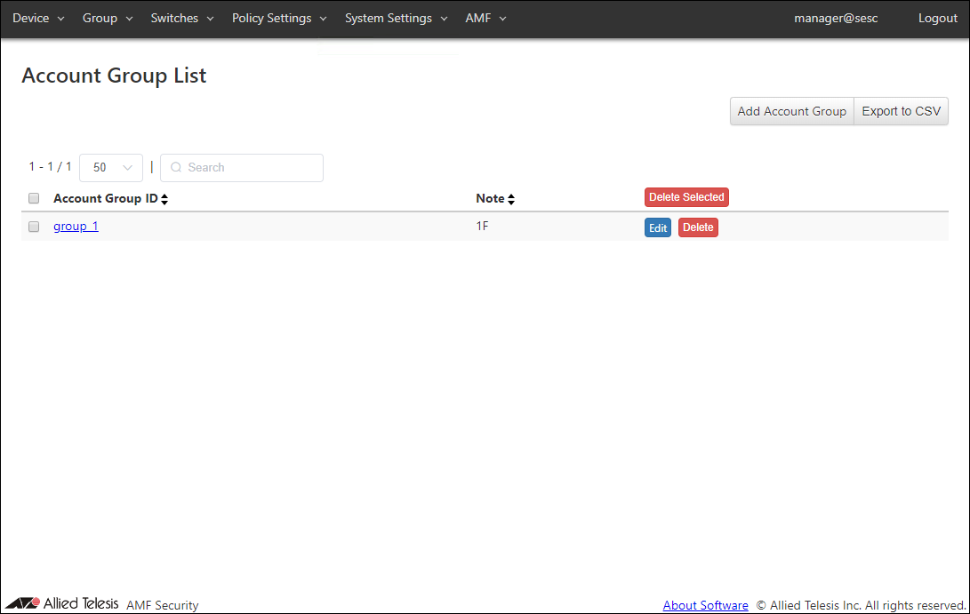 NoteAfter setting the AMF master, AMF Security mini accepts both unencrypted and encrypted sessions. You cannot disable one of them.