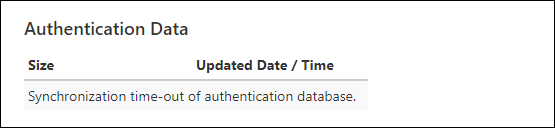 When the status of "Authentication Data" is displayed as "Synchronization time-out of authentication database."
