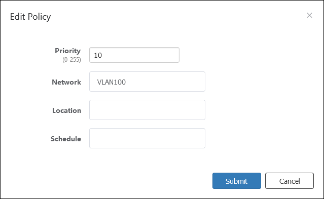 | Schedule | Specify a schedule when the unauthenticated device can be connected to the network so that it is categorized in the group. Maximum 100 IDs of the existing schedules are shown in the dropdown list. If you enter text in the field, Schedule IDs in the dropdown list are dynamically filtered to the ones which contain the input text in Schedule ID or Note (it shows maximum 100 elements). From the dropdown list, select a Schedule ID. If you specify a Schedule, the group can access the network only when the schedule is effective. If you do not specify a schedule, a device can always access the network. You have to add the schedule before specifying it for a group. Refer to Policy Settings > Add Schedule for the instruction on how to register a schedule. |