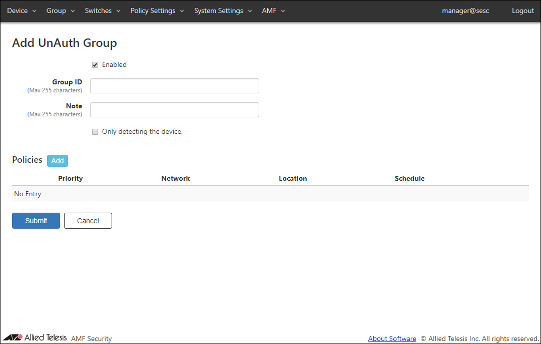 - Click the "Submit" button to go back to the Group > Add UnAuth Group page.