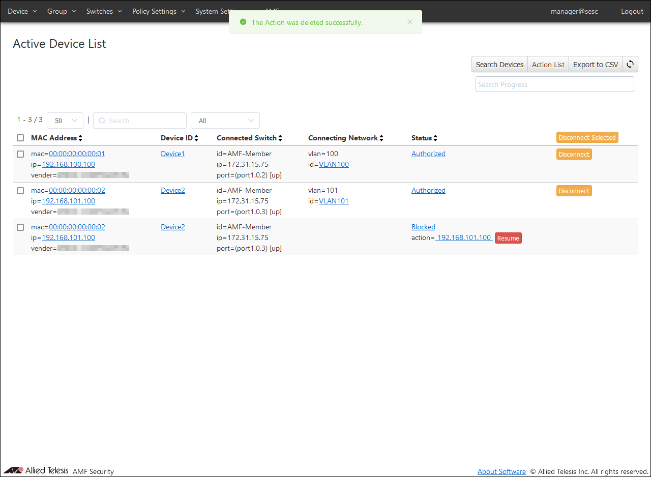 NoteFor details on AMF Security basic settings (application settings) performed with AT-VST-VRT, refer to the AT-VST-VRT document posted on our website.