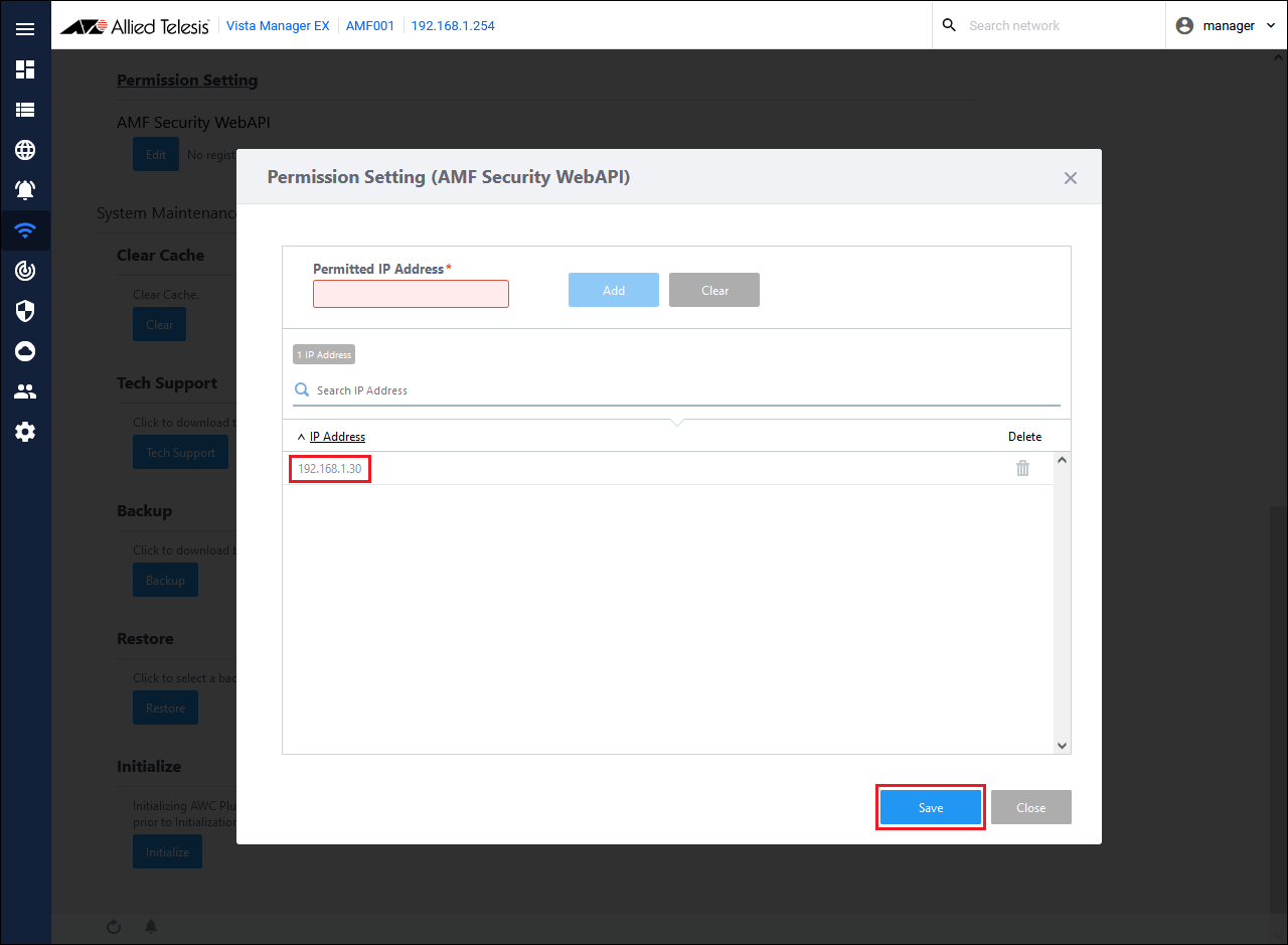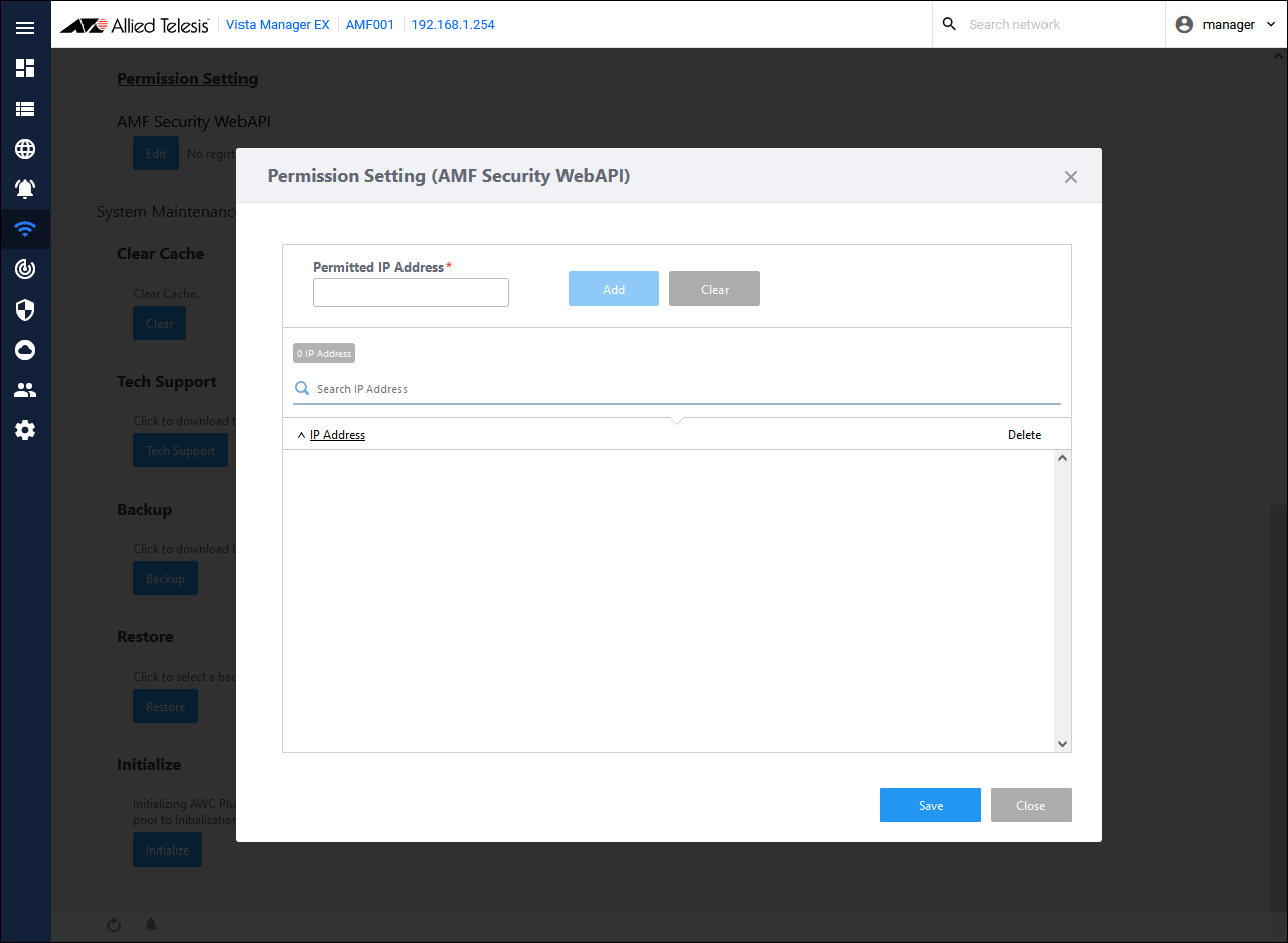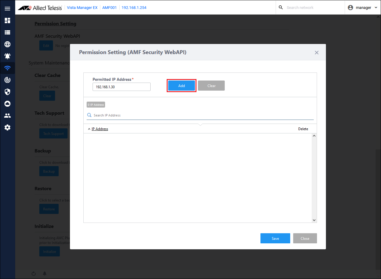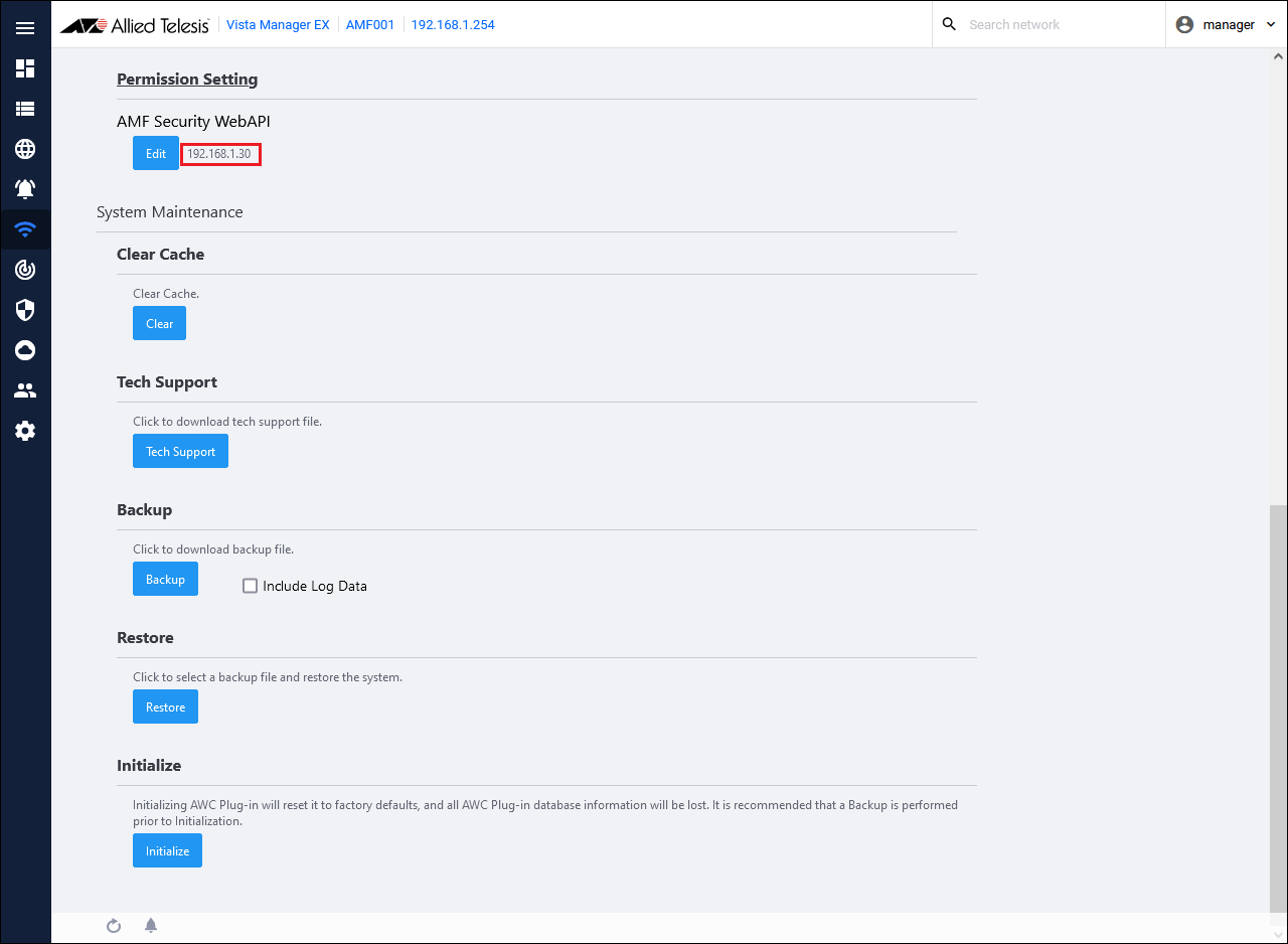 - Set the AMF Security IP Address in the system settings of AWC Plug-in