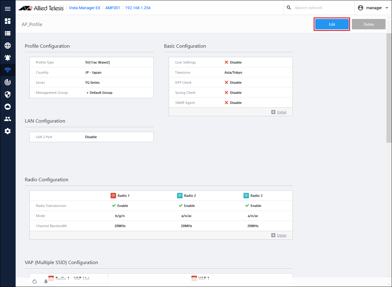 | Wireless settings/AP common settings/VAP (multi-SSID) settings/Detailed settings