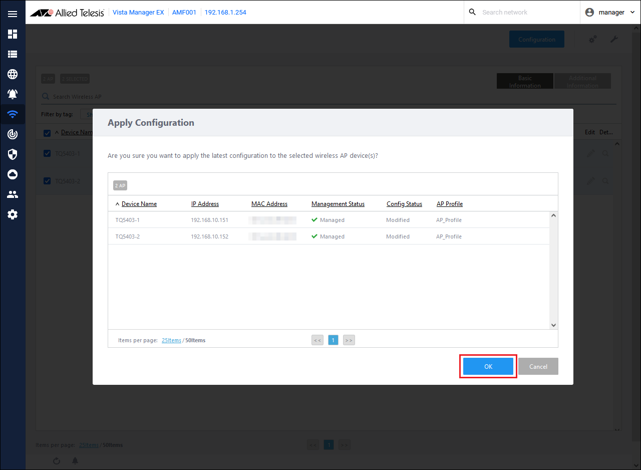 - Check the checkboxes of the wireless APs "TQ5403-1" and "TQ5403-2".