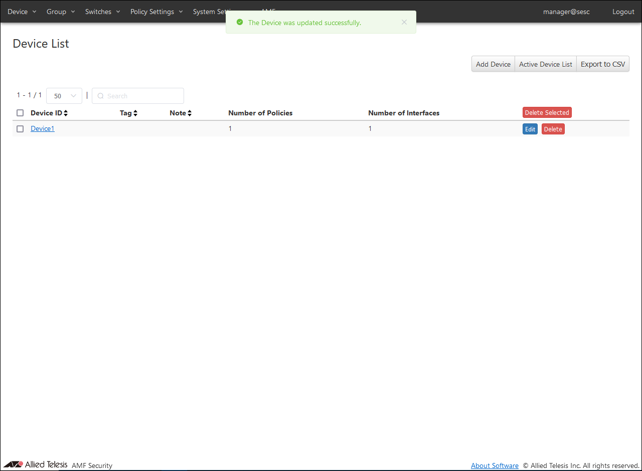 For details on AMF Security basic settings (application settings) performed with AT-VST-VRT, refer to the AT-VST-VRT document posted on our website.