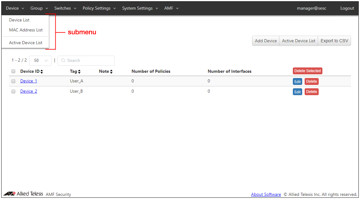 | Device > Active Device List | |
