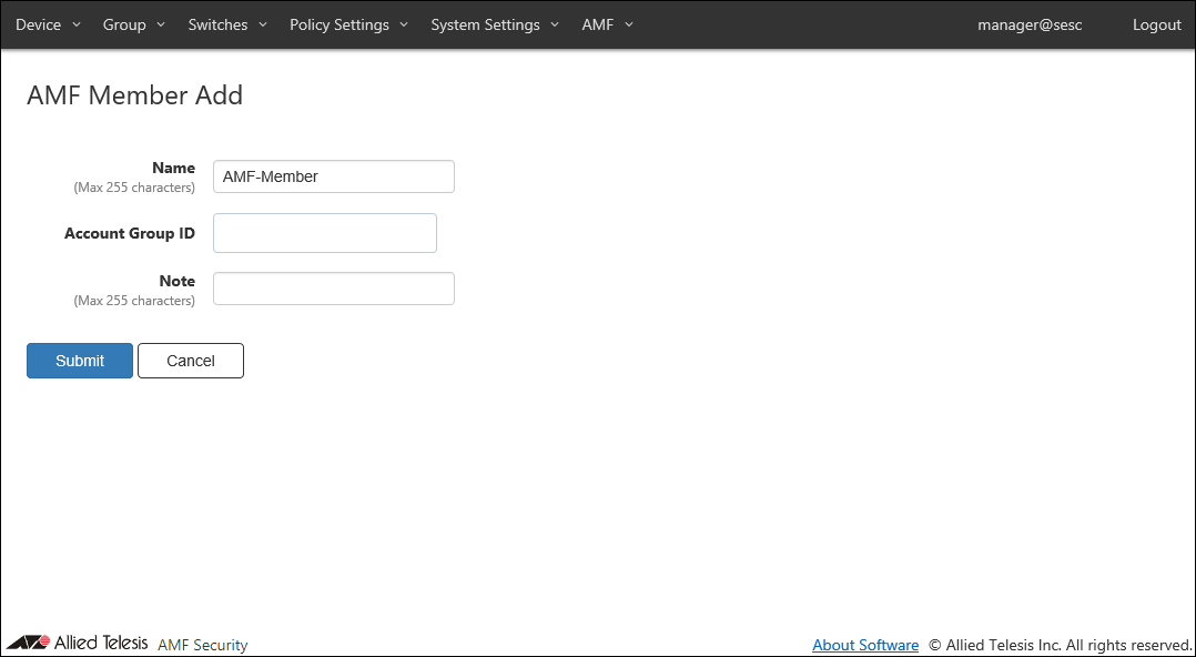 Name must be the same as the host name of AMF Member. This is because AMF Member is managed by the host name of AMF Member.