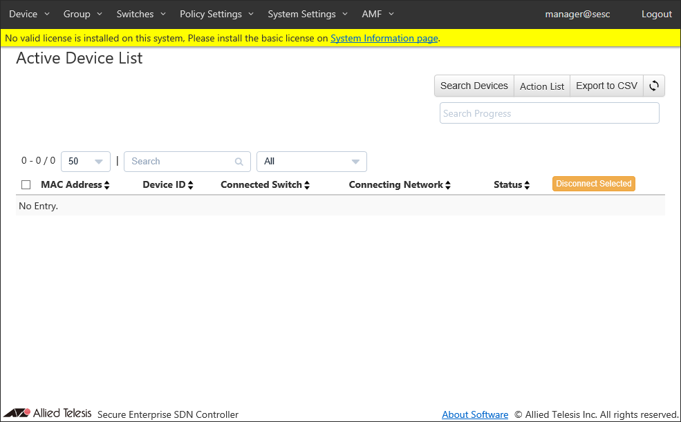 - You can optionally install Addon licenses to increase the maximum number of OpenFlow Switches AT-SESC can manage.