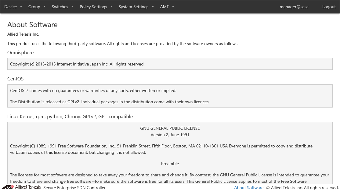 Option What is displayed Device > Active Device List All All the devices in any of the Authorized, Blocked, Link-Down, IP-Filter, Quarantined, Authentication Failed or Detected status. Authorized Devices matching the security policy for the registered device or the UnAuth Group. Link-Down Devices which are being blocked by AMF Application Proxy's Link-Down action. IP-Filter Devices which are being blocked by AMF Application Proxy's IP-Filter (Layer 3) action. Blocked Devices which were blocked by an instruction of an external system or an operation of an administrator. Quarantined Devices which were moved to quarantine network by an instruction of an external system or an operation of an administrator. Authentication Failed Devices which failed to authenticate because they were not registered or they didn't match any security policy. Quarantined | Blocked | IP-Filter | Authentication Failed Devices which are in any of the Quarantined, Blocked, Link-Down, IP-Filter or Authentication Failed status. Detected Device which were detected by the UnAuth Group's detection feature. Log-Only Devices for which logs were generated without taking any actions. Switches > Active OpenFlow Switch List All All OpenFlow Switches in any of the Negotiating, Updating or Ready status Negotiating Switches that are preparing synchronization with AT-SESC where they are initializing OpenFlow functionalities, confirming packet control flow, configuring upstream port name and number. Negotiating also means that an upstream port name and the OpenFlow port numbers are inconsistent. Updating Switches which are updating synchronization state with AT-SESC. Ready OpenFlow Switches that have completed the initial settings of the OpenFlow function and are ready for device connection.