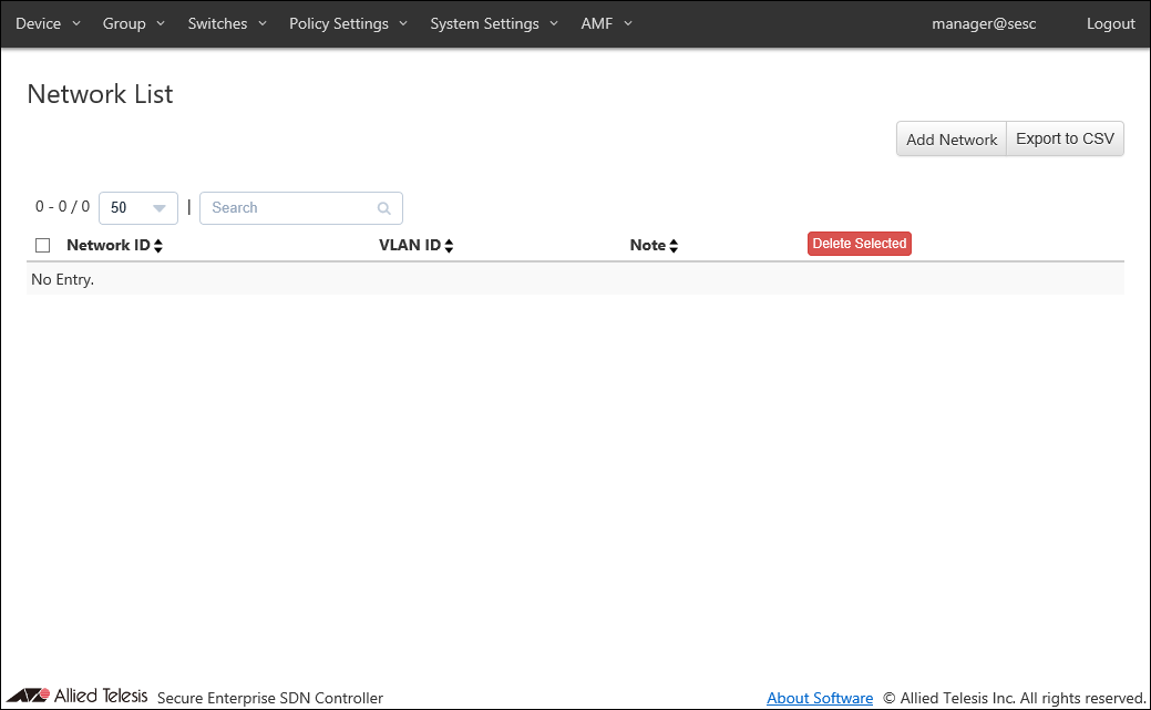 | Number of Switches | The number of OpenFlow Switches and AMF Members registered at the location. |