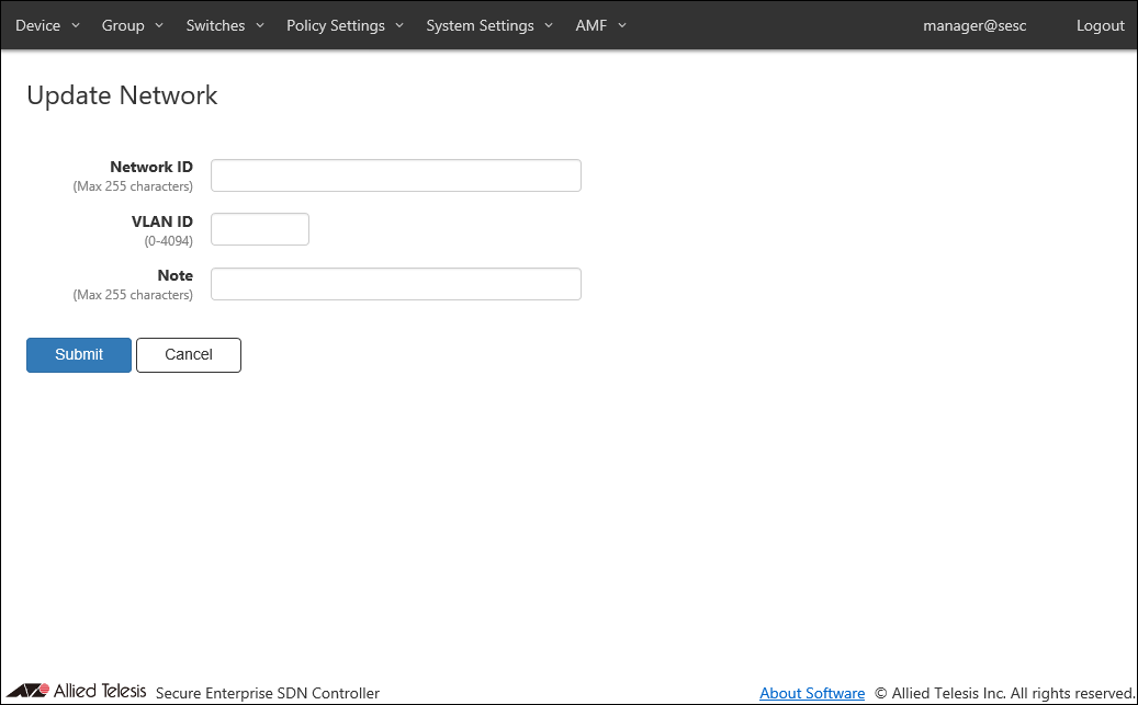 | Note | Arbitrary string (comment) for the OpenFlow Switch or AMF Member. |