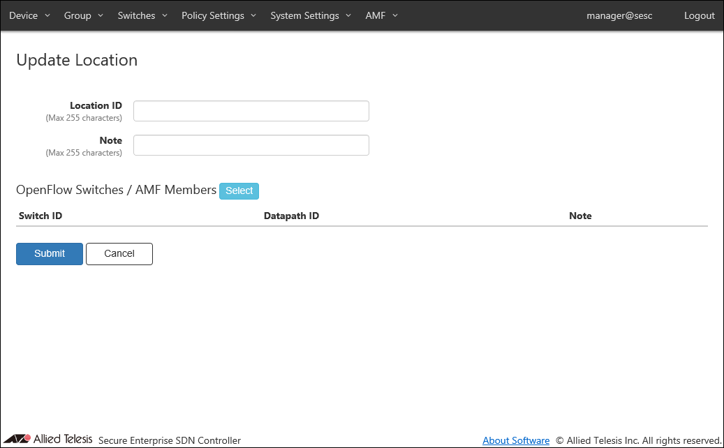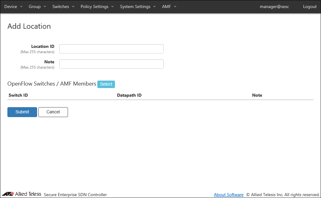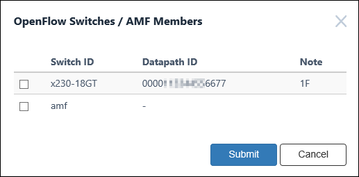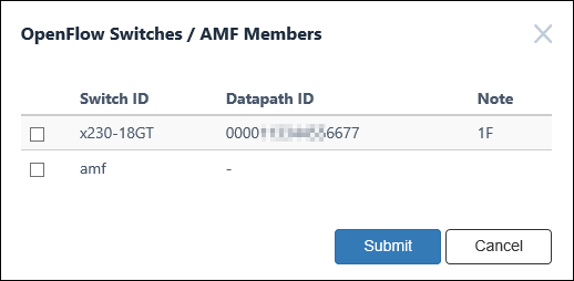 | Submit | Add the checked OpenFlow Switches or AMF Members to the location. |