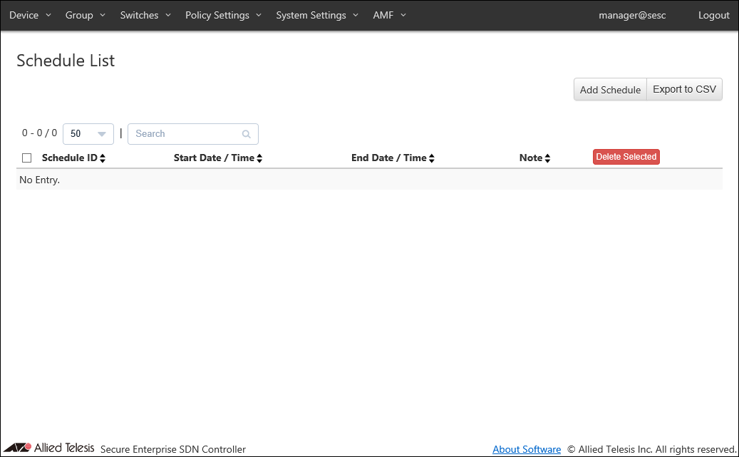 | Switch ID | ID (Name) of the registered OpenFlow Switch or AMF Member. |