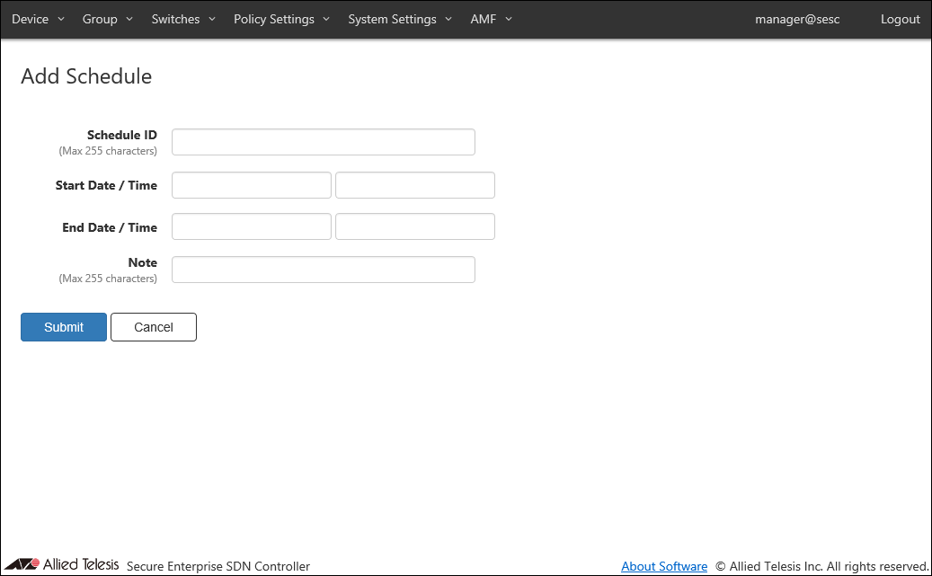 | Submit | Add a new schedule. |