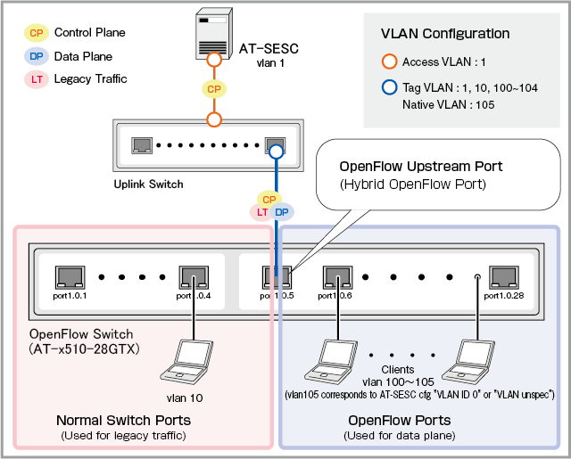 | OpenFlow Switch's upstream port | port1.0.5 |