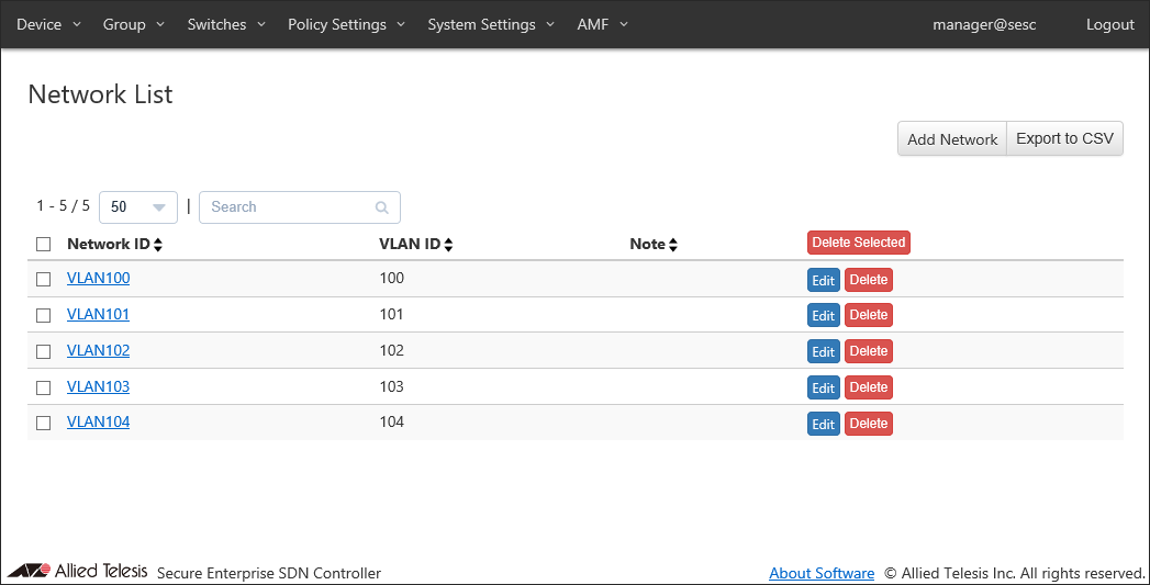 You can view the added network on the Policy Settings > Network List page. Repeat this process until you add all required networks.