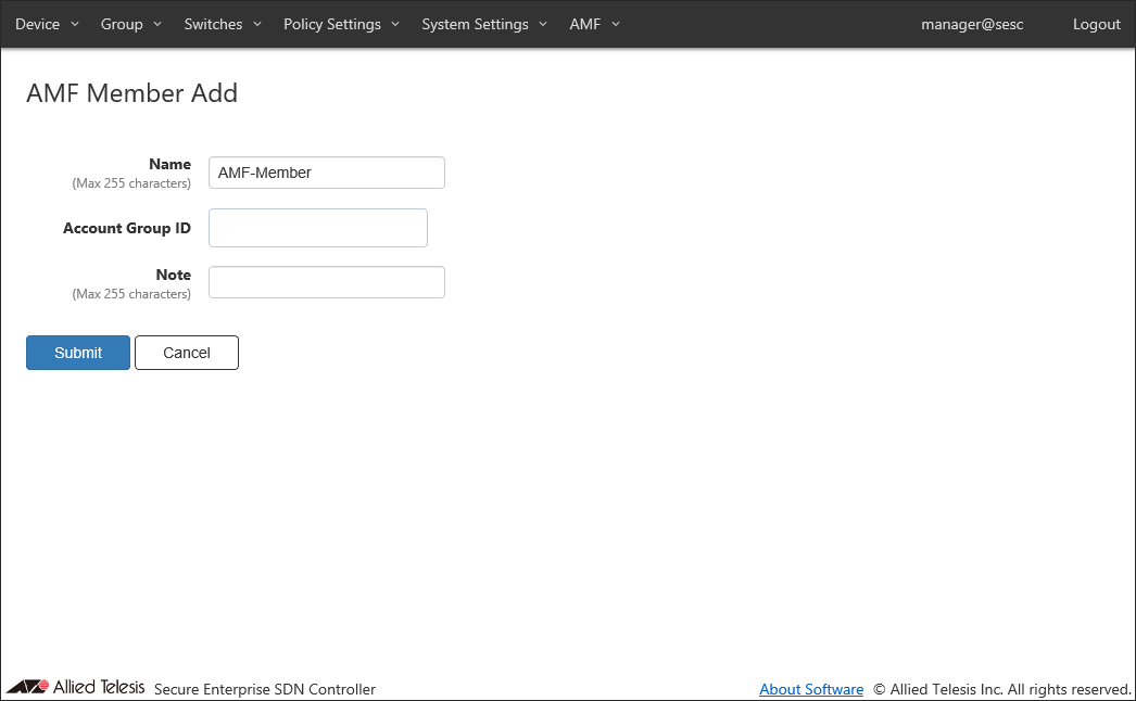 Name must be the same as the host name of AMF Member. This is because AMF Member is managed by the host name of AMF Member.