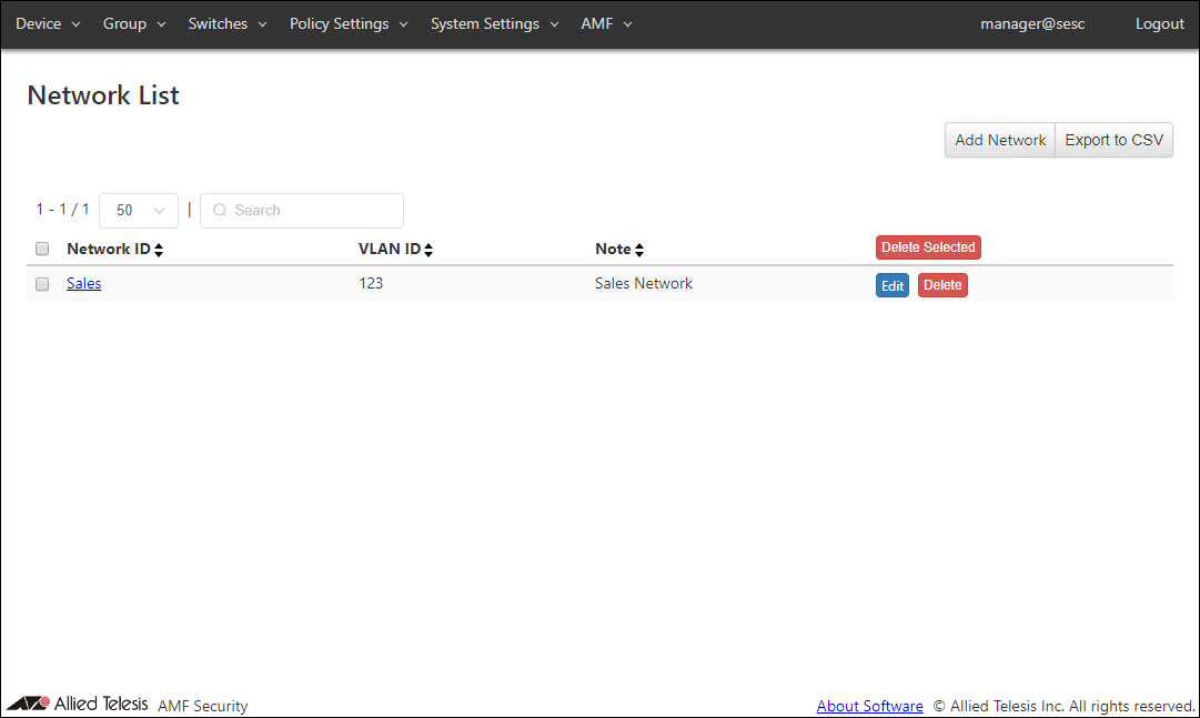 Later you can use the network to specify which VLAN a device can belong to. AMF Security achieves this by telling switches to add appropriate VLAN tags to the packet originating from the allowed devices.