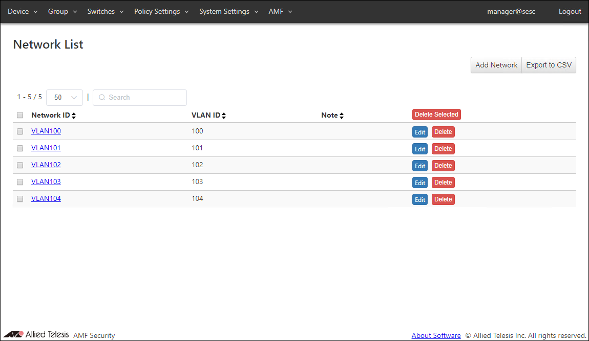 You can view the added network on the Policy Settings > Network List page. Repeat this process until you add all required networks.