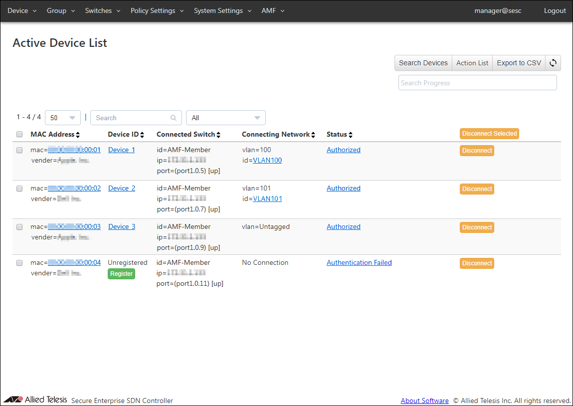 AMF Security authenticates devices connected to the AMF Member using the registered authentication data.