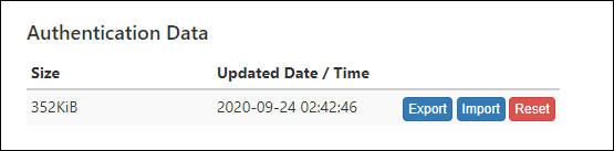 - Click the "Export" button of the Authentication Data item to download the authentication data.