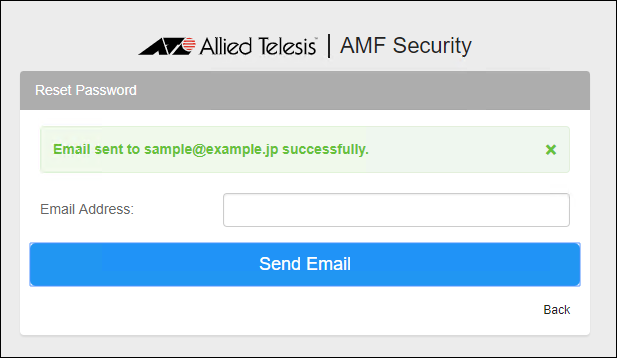 - If a valid SMTP setting is registered, the message "Email sent to (Email Address) successfully." is displayed. Click "Back" at the bottom right.
