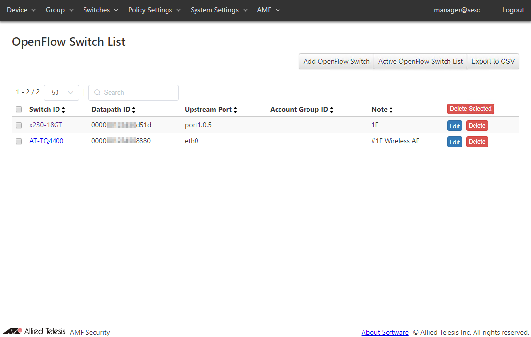 NoteDatapath ID of an OpenFlow Switch cannot be changed from AMF Security.