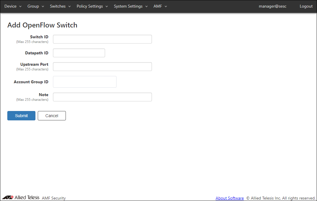 | Submit | (only when the switch is not registered) Open the Add OpenFlow Switch page. |