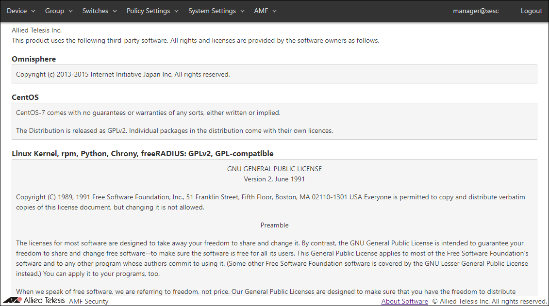 | Negotiating | Switches that are preparing synchronization with AMF Security where they are initializing OpenFlow functionalities, confirming packet control flow, configuring upstream port name and number. Negotiating also means that an upstream port name and the OpenFlow port numbers are inconsistent. |