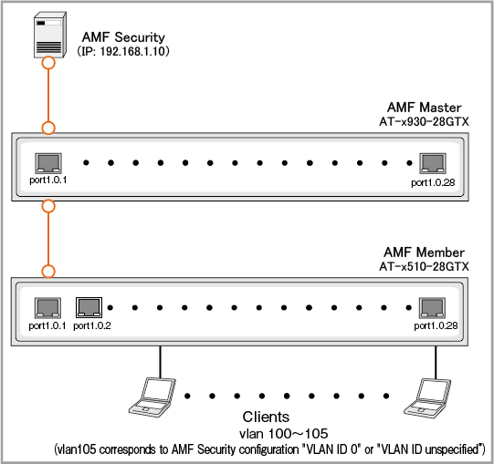 In this section, this is an example of setting the AMF Application Proxy.For each device connected to the AMF Member, AMF Security performs authentication and assigns an appropriate VLAN.