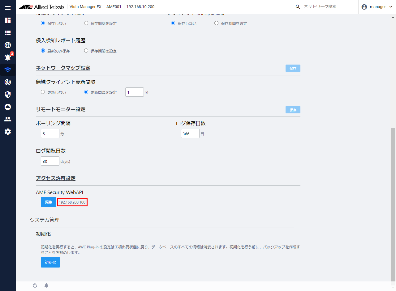 - Set AMF Security IP Address in AWC Plug-in system settings