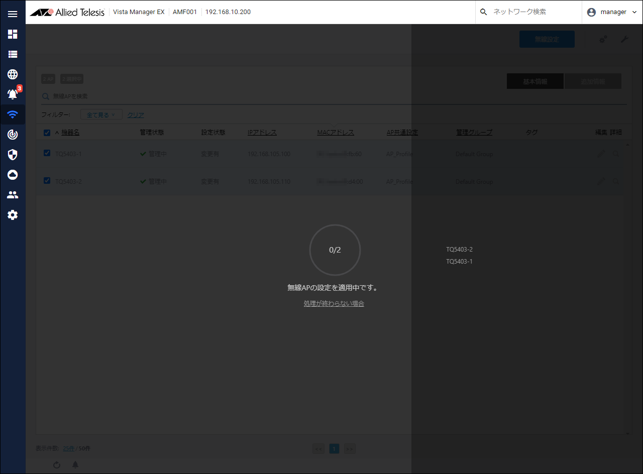 - Check the check boxes of the wireless APs "TQ5403-1" and "TQ5403-2".