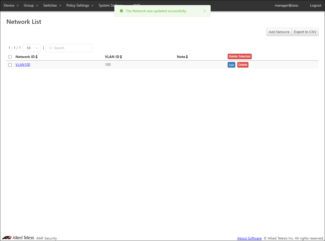Open the Policy Settings > Network List page and click the "Add Network" button to open the Add Network page.